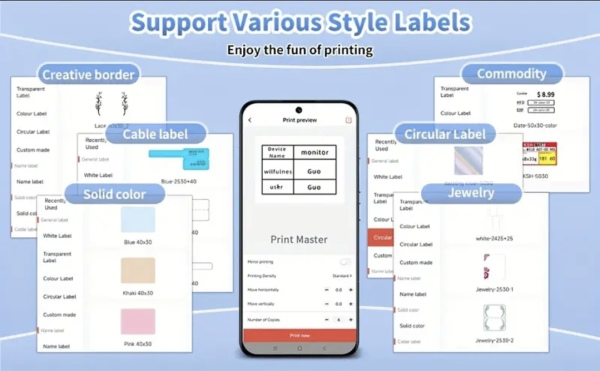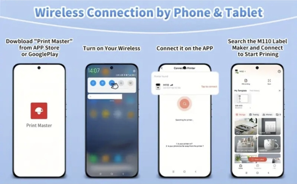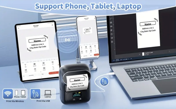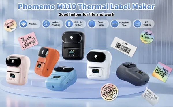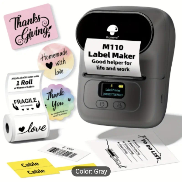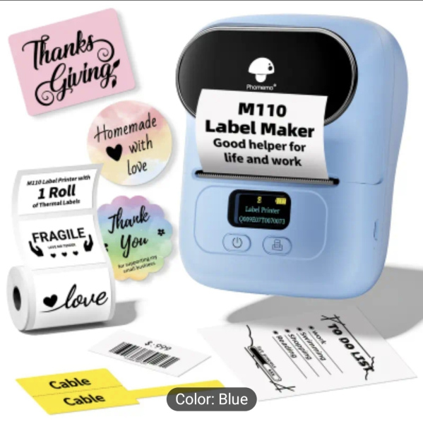 Wireless Label Phomemo M110 Label Maker. Thermal printer for barcodes, small businesses, addressing, logos, clothing, mailing, portable sticker printer
